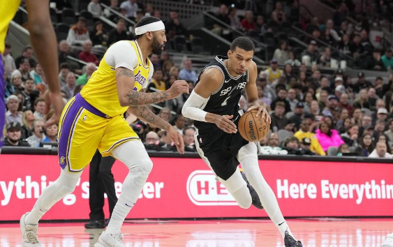 籃球直播吧12月14日訊 NBA常規(guī)賽,客場(chǎng)作戰(zhàn)的洛杉磯湖人以122-119擊敗圣安東尼奧馬刺,馬刺遭遇18連敗。戴維斯37分10籃板1助攻,文班亞馬30分13籃板2助攻。